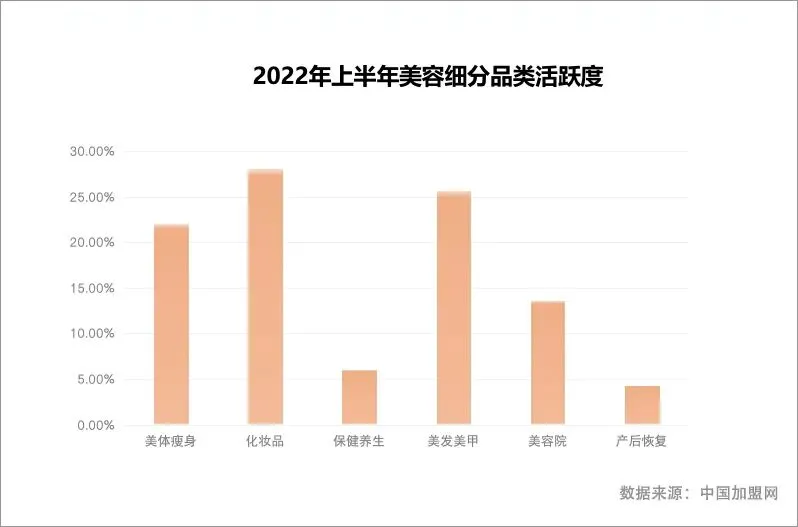 2022年上半年,美容行业投资整体受关注度虽有小范围下浮,但其细分品类势头强劲,从数据上看,化妆品行业1-3月数据表现一般,到了4、5月增长态势明显,到了6月达到了最高点。随着国家对化妆品行业的监管力度提升,中国化妆品企业将在产品安全性及其功效的稳定性作为大力发展的前提,因此,那些具有较强研发实力的化妆品加盟品牌将有望占据更大的市场份额。