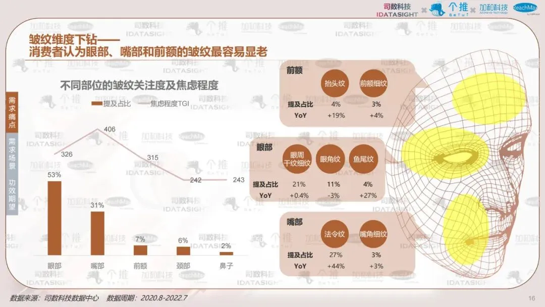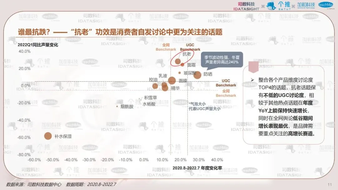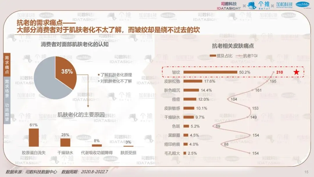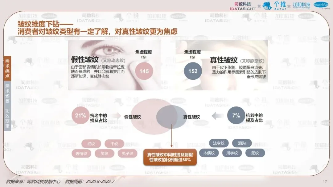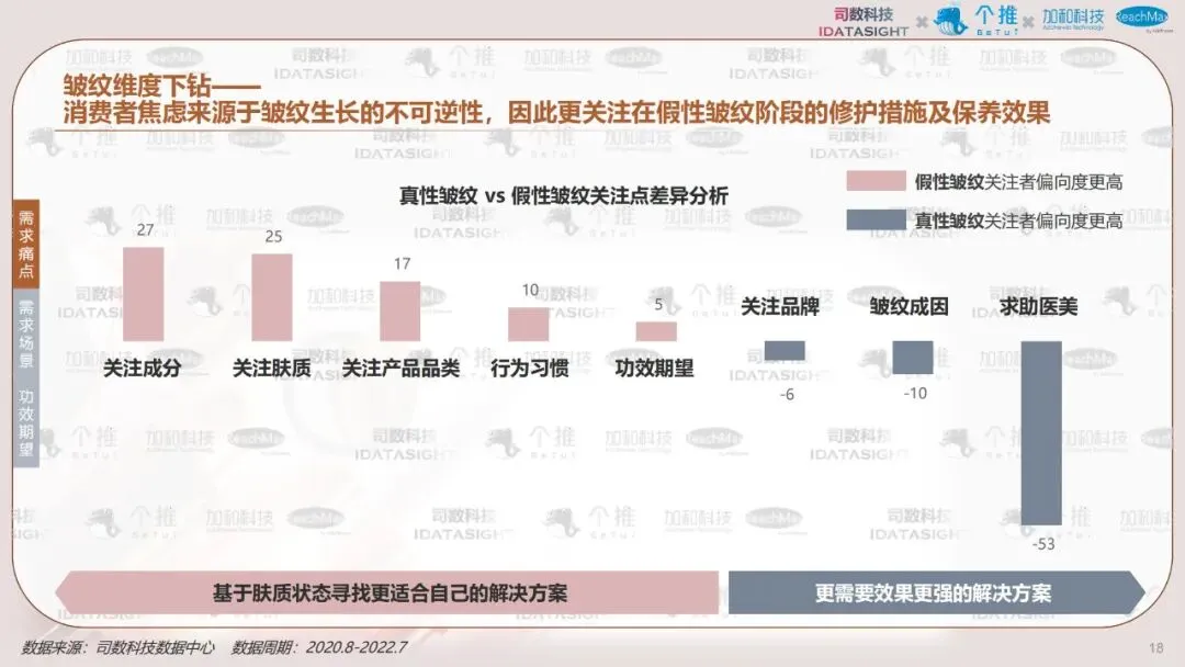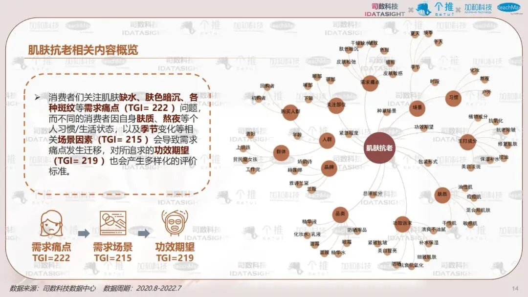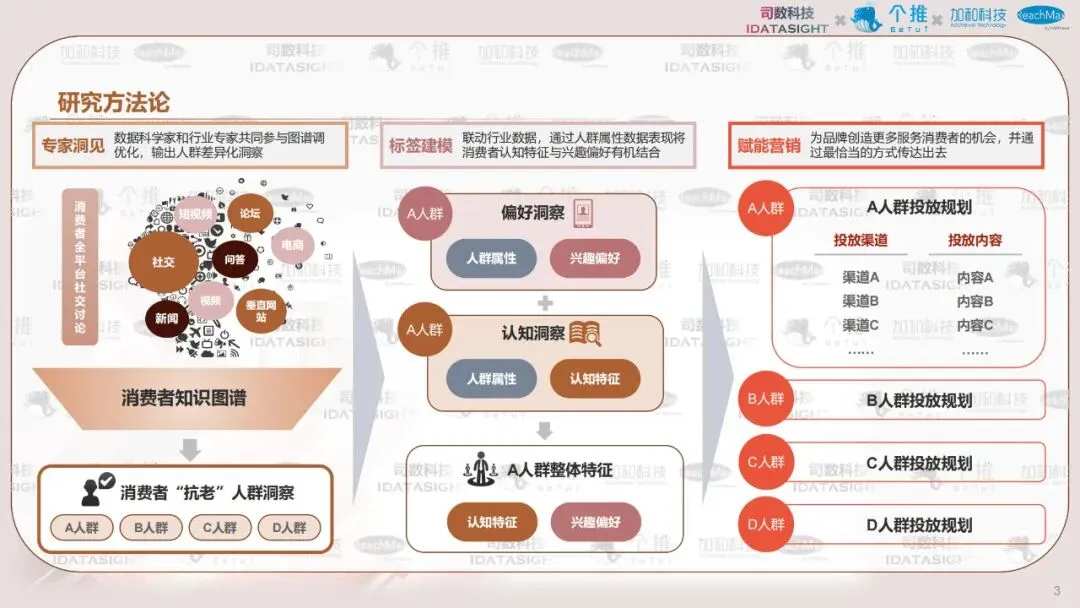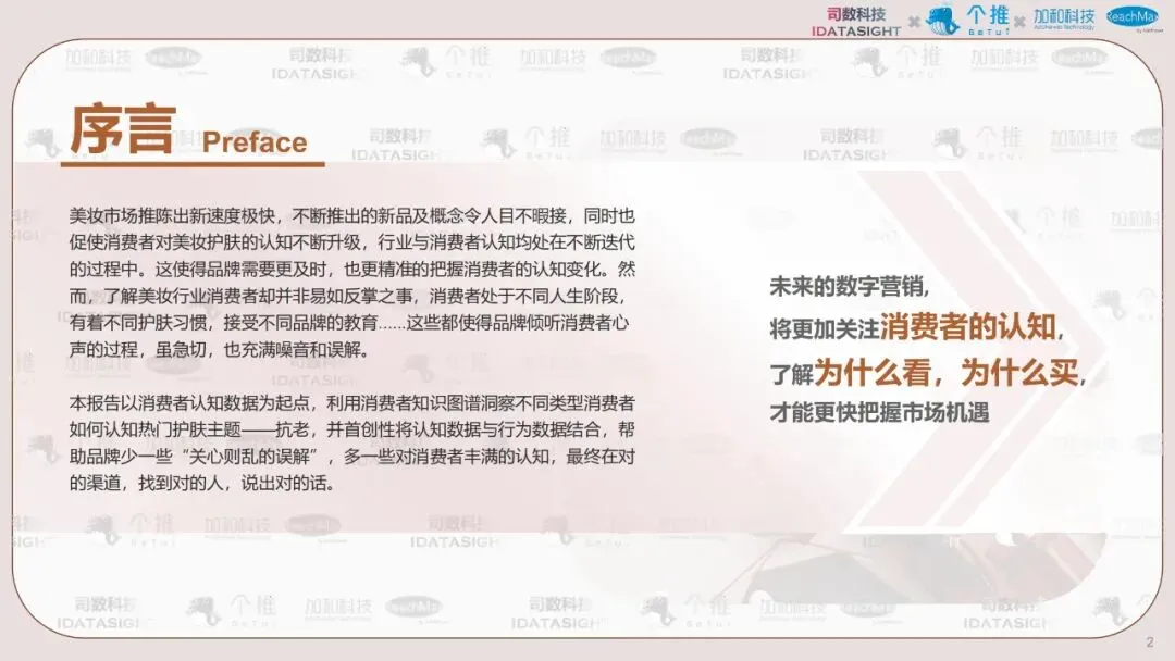 本报告以消费者认知数据为起点,利用消费者知识图谱洞察不同类型消费者如何认知热门护肤主题————抗老,并首创性将认知数据与行为数据结合,帮助品牌少一些“关心则乱的误解”,多一些对消费者丰满的认知,最终在对的渠道,找到对的人,说出对的话。