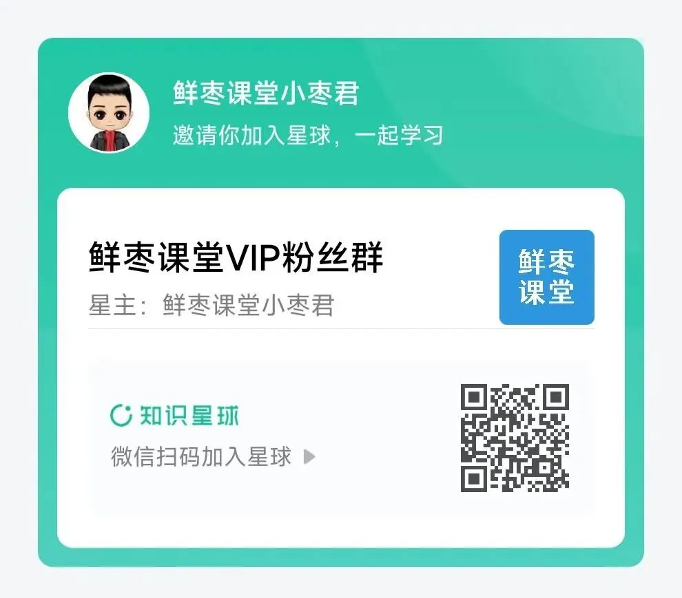 大家如果后续还需要的话,可以加入鲜枣课堂知识星球获取: