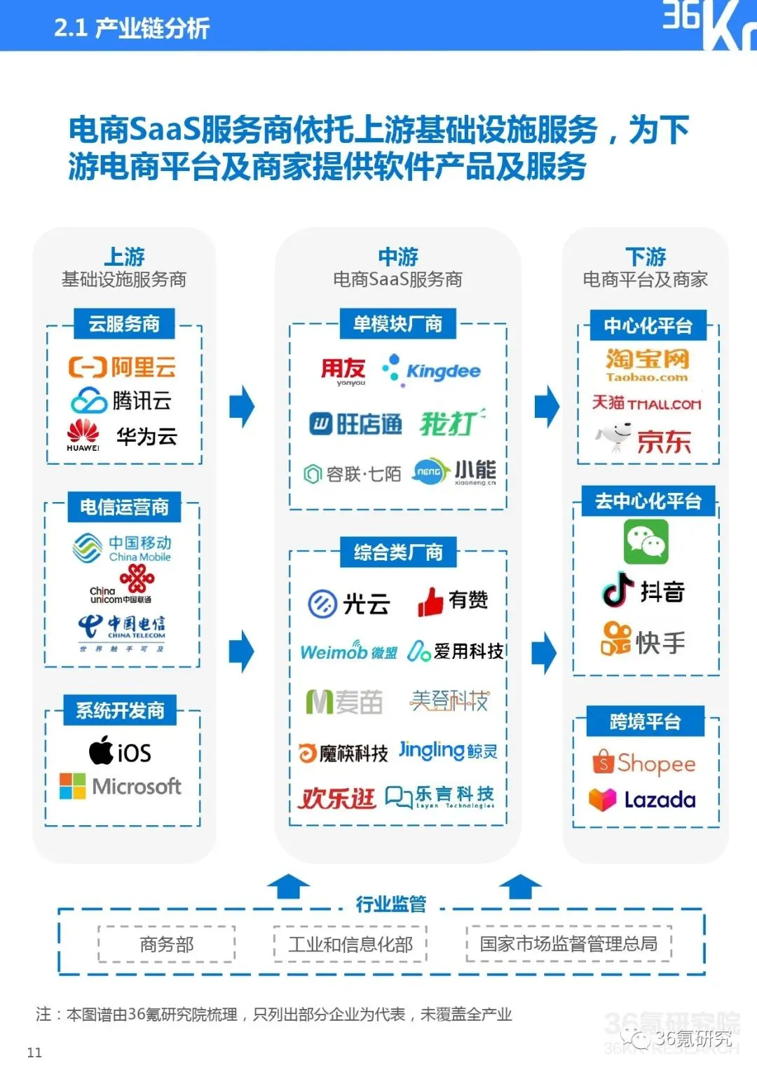 我国电商SaaS行业产业链上中下游分别拥有哪些参与者?