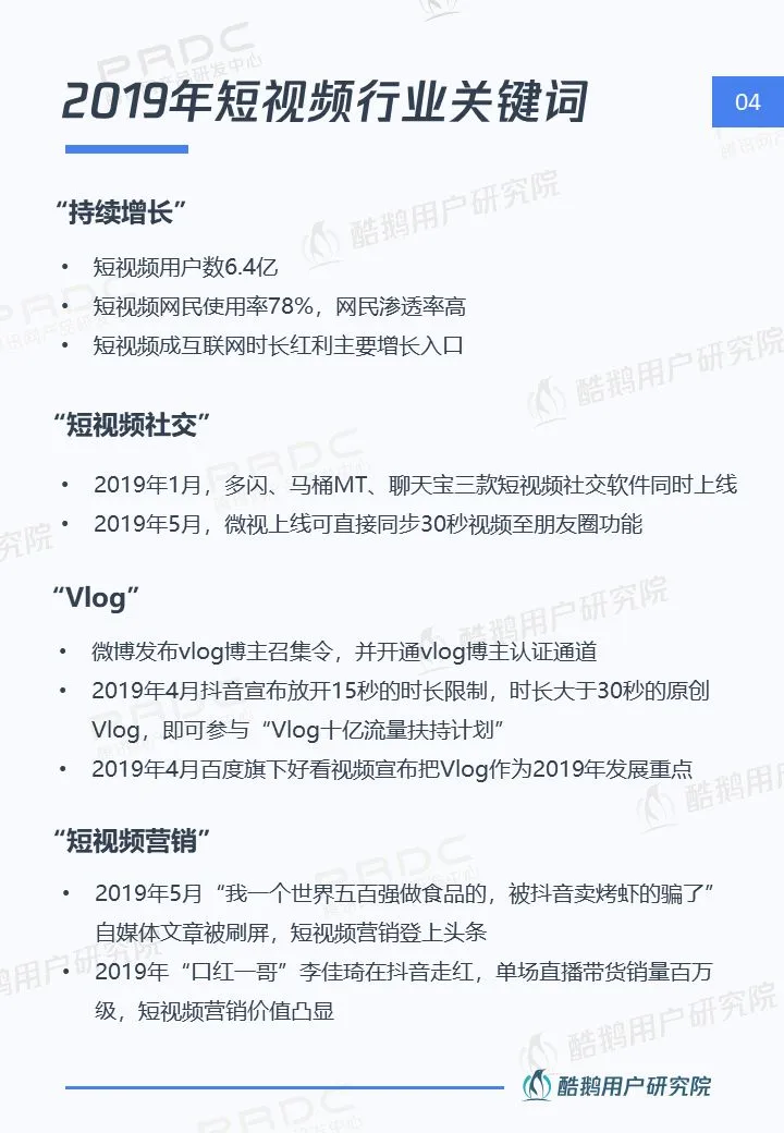 酷鹅用户研究院(微信ID:kueclub)特开展短视频专项研究,全面解读2019短视频行业发展新趋势、用户行为与行业机会点。