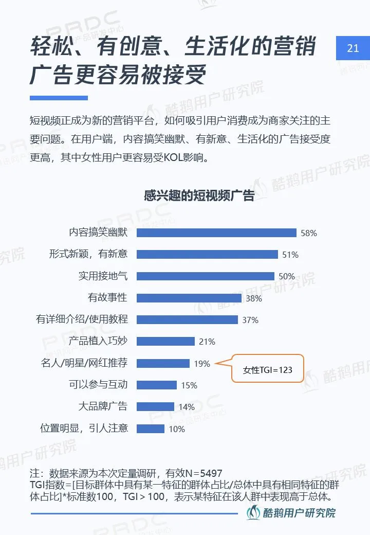 2、短视频营销价值较大,女性和三四线用户更容易转化