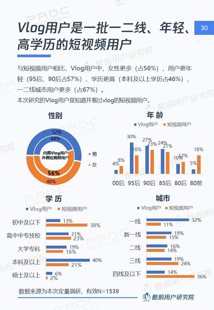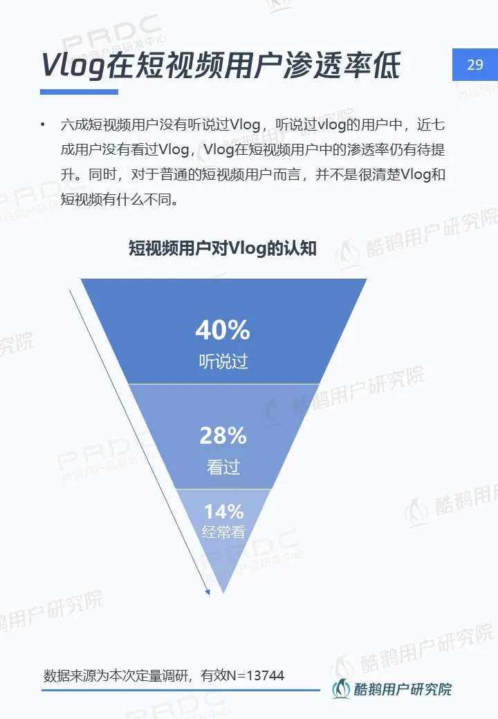 4、Vlog在短视频用户中的渗透率低,Vlog覆盖的是短视频用户中的小众用户