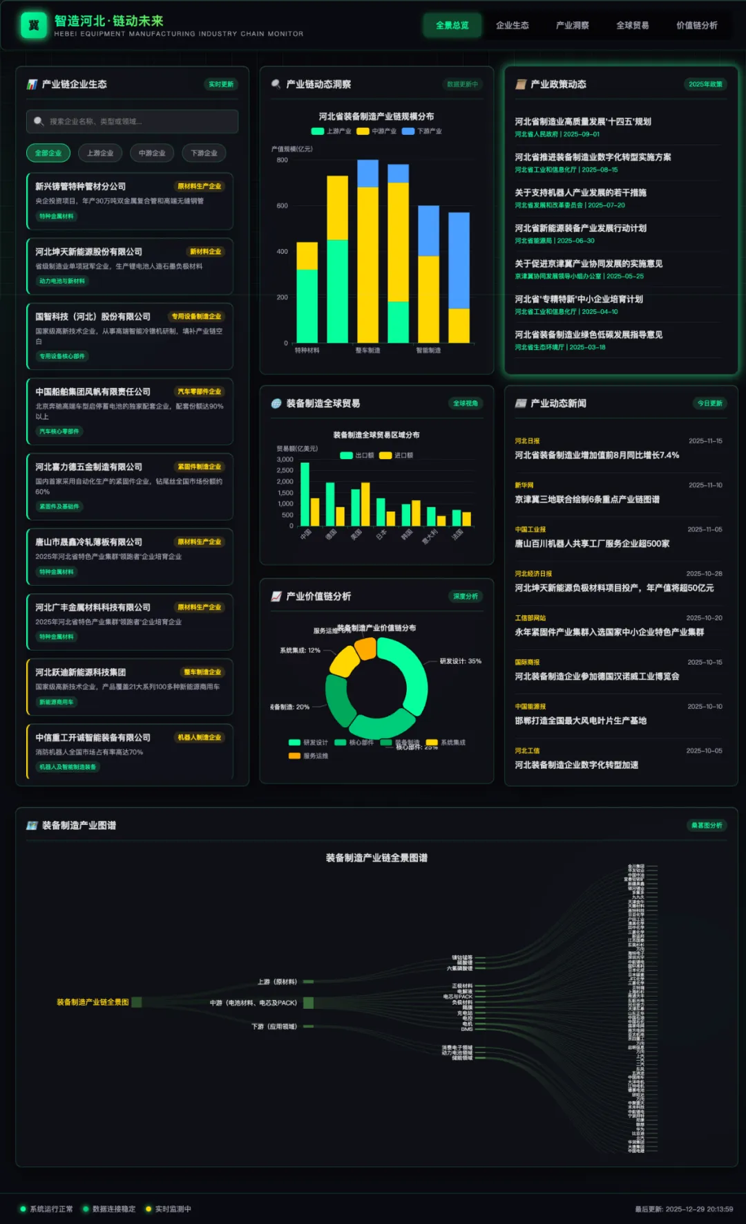 为清晰透视河北省装备制造产业的全貌与内在关联,我们基于详尽的产业数据,绘制了如下产业链全景图谱。该图谱系统梳理了从上游关键材料与部件,到中游多领域装备制造,再到下游应用与服务的完整链条,并直观揭示了各环节的企业分布、技术壁垒与价值重心。
