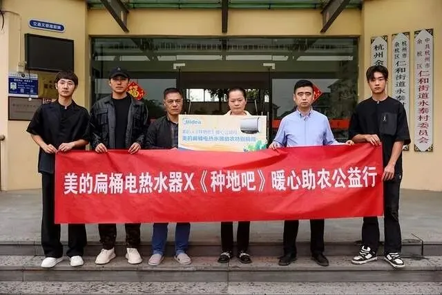 在美的电热水器和爱奇艺自制劳作纪实互动节目《种地吧》跨界合作的背景之下,2023年4月13日,美的热水器联合综艺中的三位种地少年蒋敦豪、李耕耘和陈少熙,与美的电热水器负责人王明先生一同前往了浙江省杭州市余杭区仁和街道永泰村及西湖区三墩镇后陡门村两地展开了一场特别的热水器公益捐赠活动。