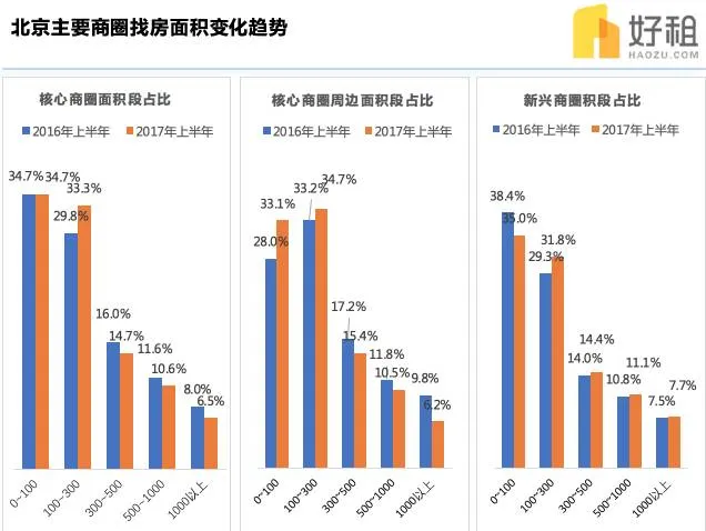 小微企业充满活力、资本在核心商圈周边快速流动1、小面积房源需求量增加