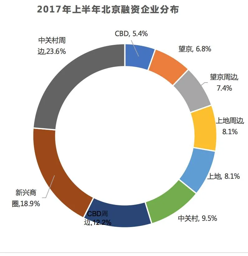 而从好租提供的2017年上半年北京融资企业分布图可见,几大核心商圈周边融资分布已超过核心商圈的总和,核心商圈周边成为“发展中”企业的剧集区域,成为资本的活跃区域。