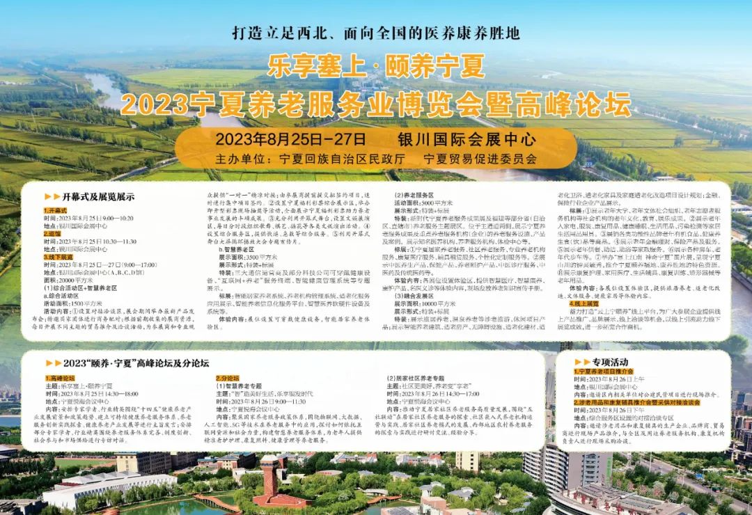2023宁夏养老服务业博览会暨高峰论坛8月25日在银川召开