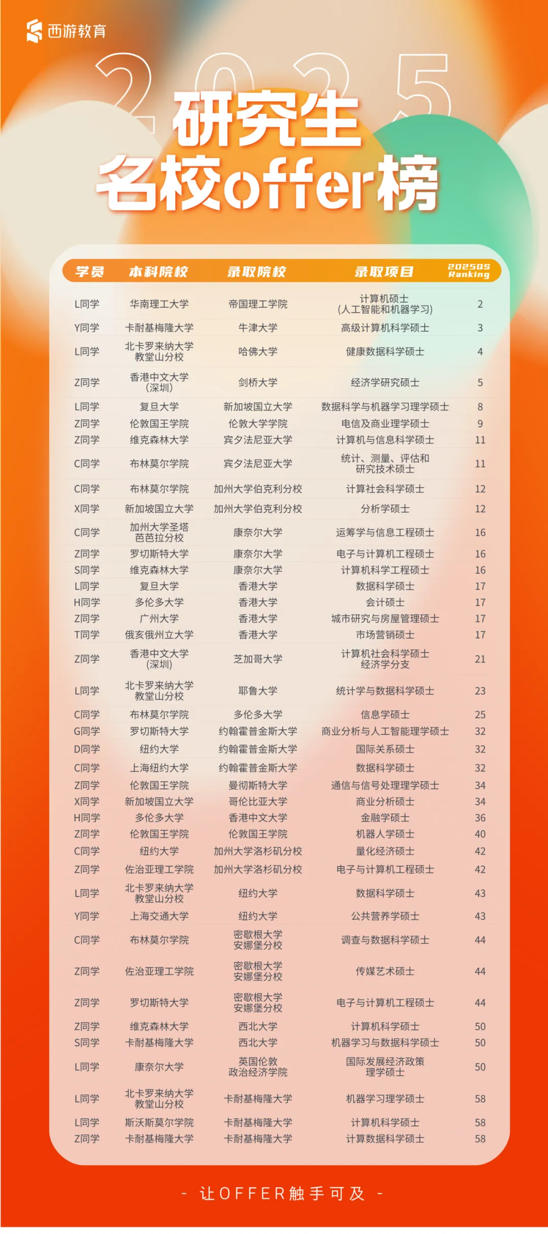 西游教育全球名校申研服务,帮助学生成功申请商业分析硕士项目。
