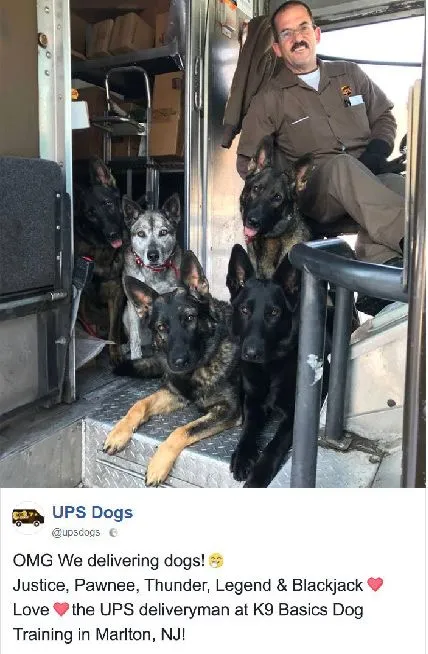 这位快递员是在去给警犬训练基地送包裹时,认识了这么一群帅气的狗子们