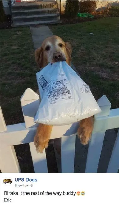 有时候,狗狗们也会用自己的方式回馈快递小哥哥
