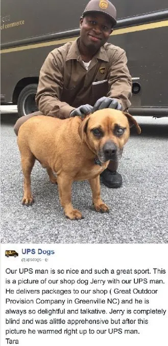 有只失明的狗狗也很喜欢经常来店里的快递员,因为每次一闻到他的气味,它就一定会摇尾巴上前迎接小哥哥...