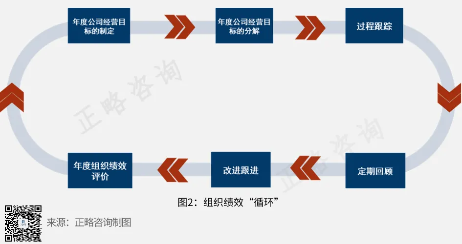 组织绩效“循环”包括了公司年度目标制定与分解、过程跟踪、定期回顾、改进跟进以及年度组织绩效评价等关键环节。