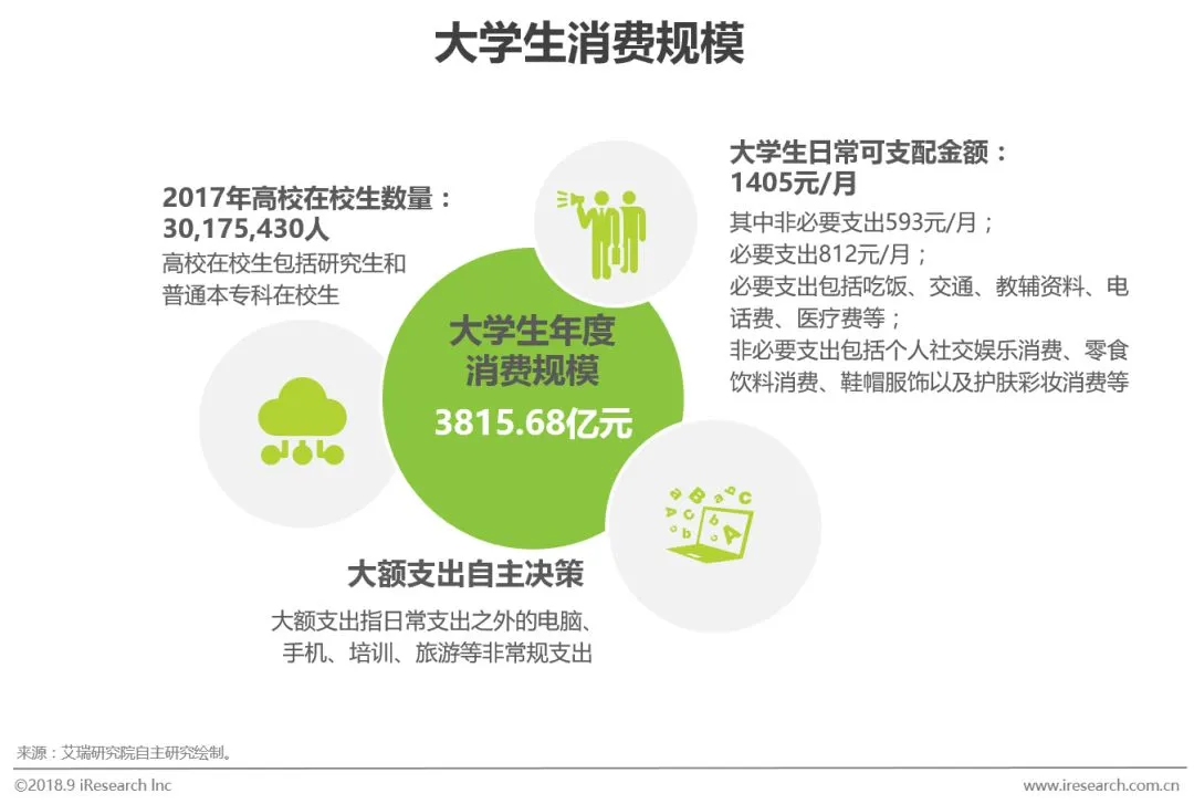 中国经济发展进入新常态,消费成为拉动经济增长的核心动力。大学生成长于网络高速发展的时代,其消费和娱乐存在明显的互联网印记,大学生年度消费规模达3800亿元,了解大学生消费特征,推及未来市场的变迁和发展,是本次报告的研究课题。