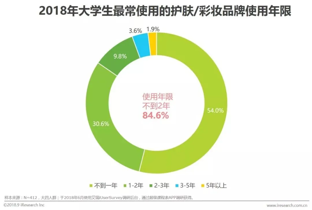 大学阶段对大学生品牌使用偏好具有较大的影响,84.6%的大学生最常使用的日化品牌使用不到2年,62.3%的大学生使用的手机品牌数量为2-3个。