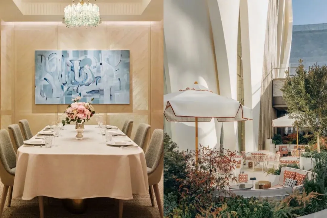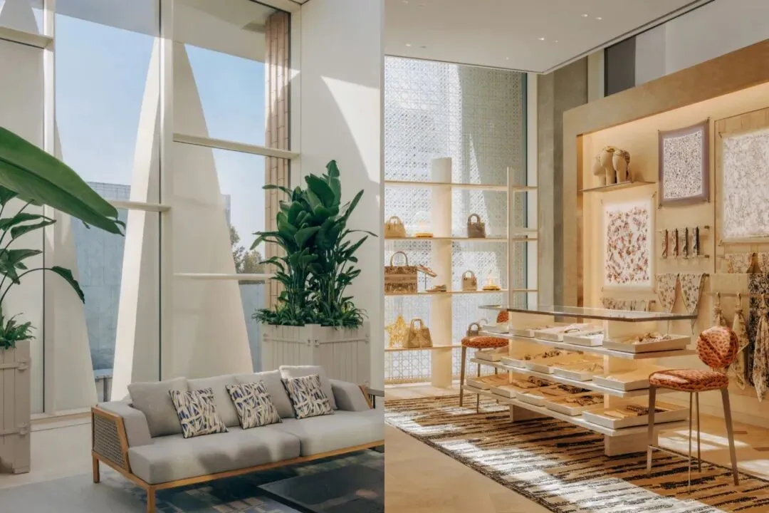 步入空间,迪奥将精品店扩展为复合场域,顶层结构呼应巴黎蒙田大道 30 号的 La Galerie Dior,螺旋楼梯与装置艺术共同指向高定工坊的核心精神。中国首家「迪奥先生」(Monsieur Dior)餐厅亦坐落其中,由米其林三星主厨 Anne-Sophie Pic 主理,将法式生活方式带入京城日常。