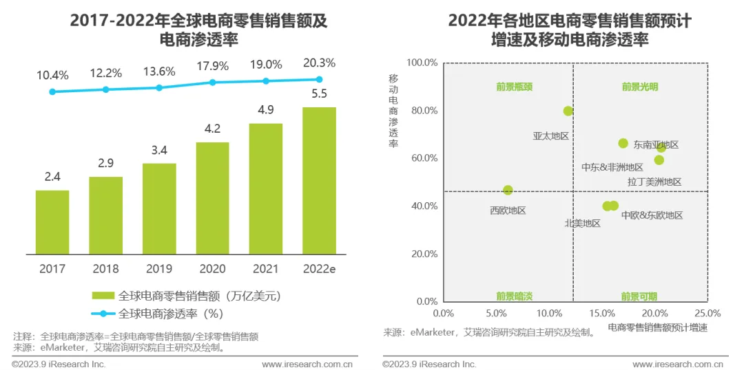 全球电商渗透率稳步提升,多数地区电商发展前景向好