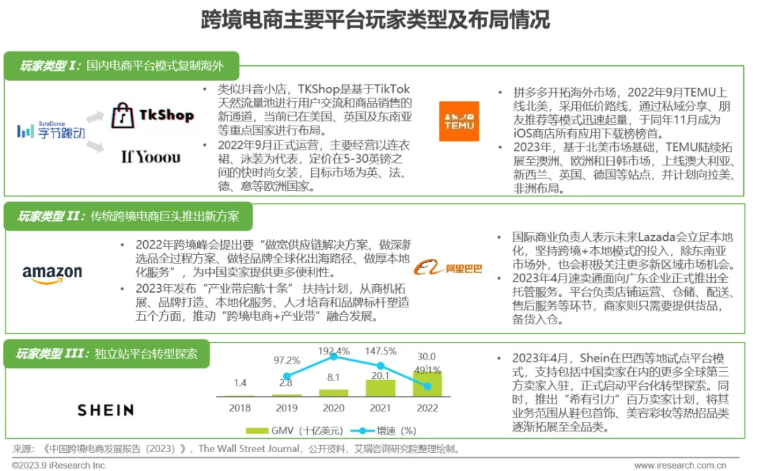 跨境平台多元化:出海赛道竞争愈发激烈,平台玩家类型多元化和布局差异化的特征也开始显现,为跨境卖家提供更多渠道选择。