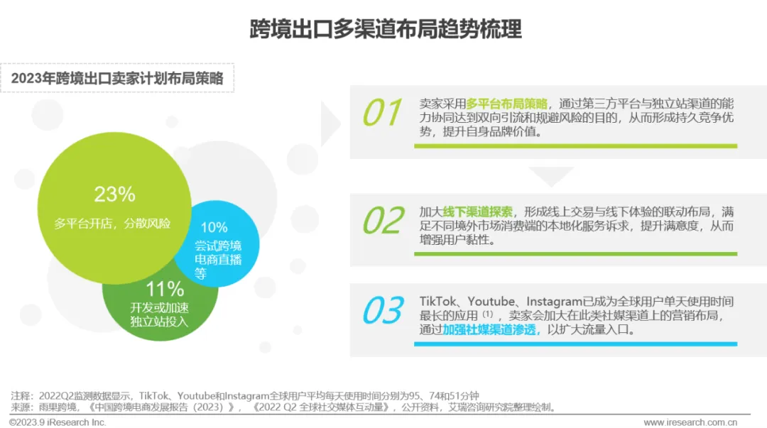 卖家多渠道布局:受平台合规趋严和市场政策不确定性的影响,卖家群体会趋向于多渠道布局以分散风险,同时线下和新兴媒体也将成为卖家群体重点关注和计划拓展的核心渠道,以加深本地化服务能力和拓展流量入口。