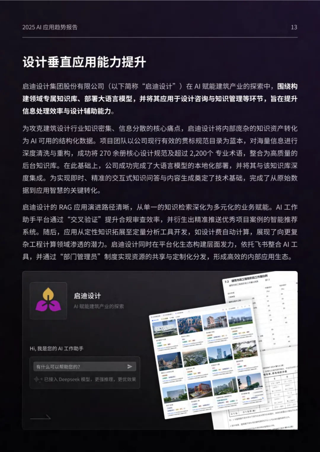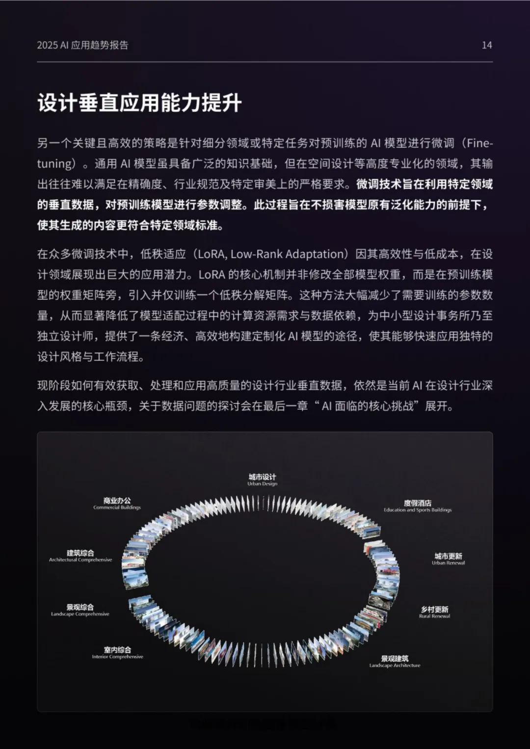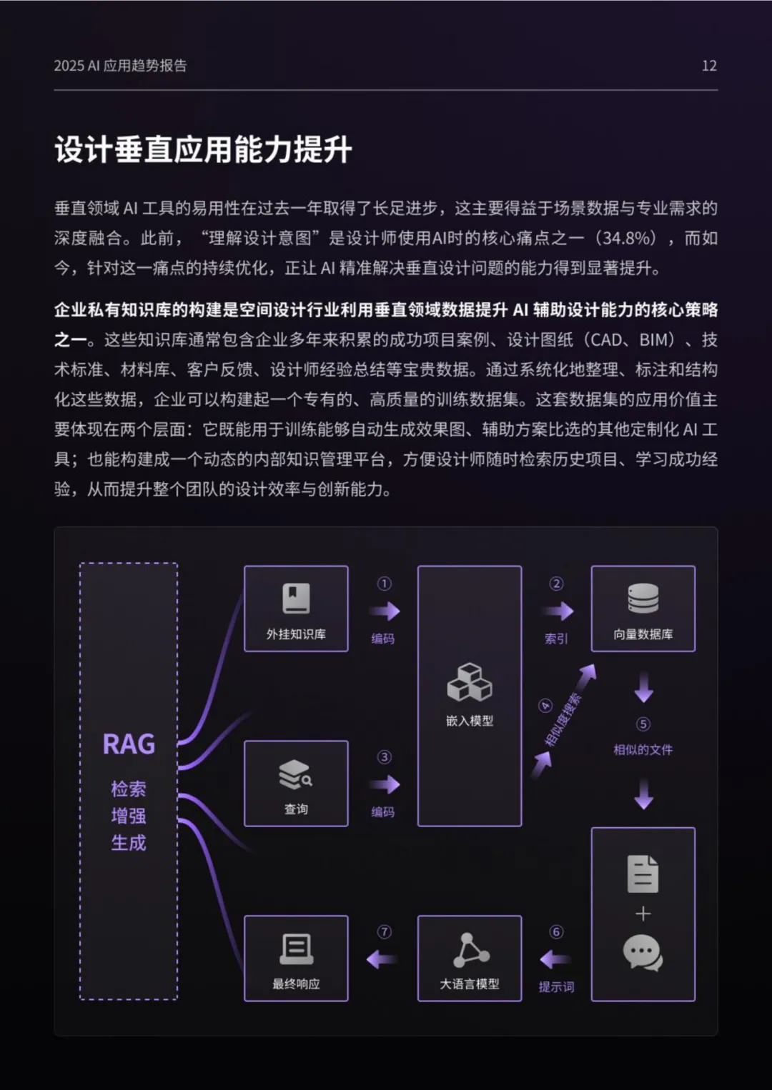 垂直能力增强:企业通过私有知识库(如启迪设计整合 270 余册规范)、LoRA 微调技术,提升 AI 对专业需求的适配性;