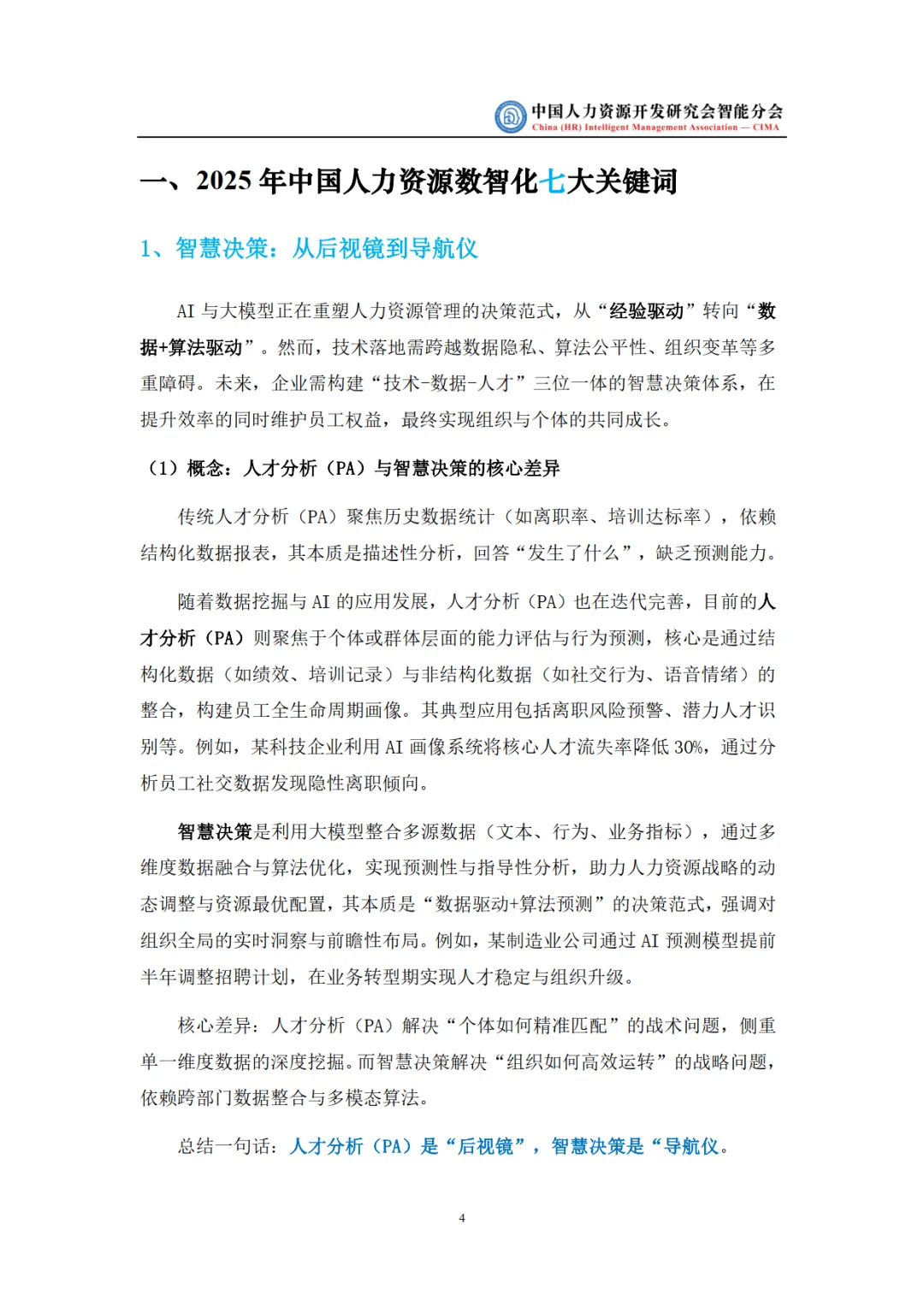 核心关键词勾勒发展核心维度。智慧决策实现从 “经验驱动” 到 “数据 + 算法驱动” 的转型,覆盖招聘、绩效、薪酬等全场景;生成式 AI 从内容生成演进至自主 HR Agent 阶段,重构工作流程;数据价值聚焦从治理到变现的全链路,破解数据孤岛与质量难题;组织韧性通过结构敏捷化、人才多元化筑牢抗风险能力;数据合规从本土实践拓展至全球布局,成为数智化基础;人力资源大模型从概念落地,赋能专业场景决策;员工体验平台实现从场景服务到情感连接的升级。