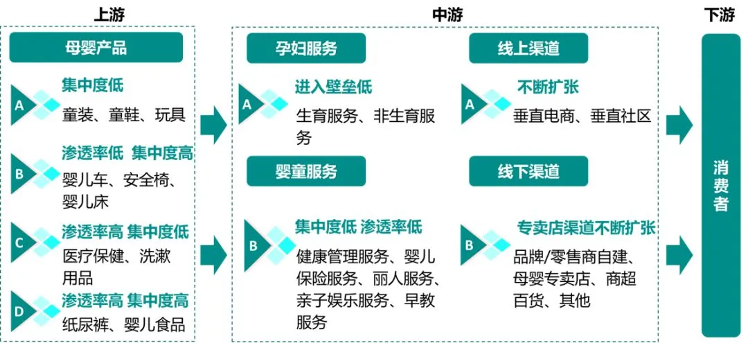 “面向孕产妇及婴童群体,满足其衣、食、住、行、用、玩、教等全方位需求,涉及商品制造、零售、生活服务、教育、娱乐、医疗卫生等多个行业的综合性消费产业体系”
