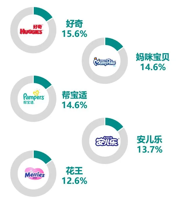 除安儿乐之外,用户关注的纸尿裤TOP5均为进口。