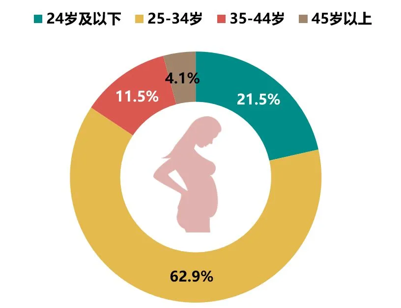 孕产妈妈主要在25-34岁,怀孕期间自身对衣着和护肤的关注更高。