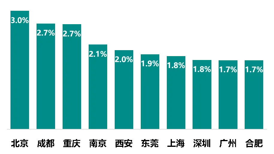 ●主要分布在二三线城市,除北上广以外,四川地区用户比例较高。