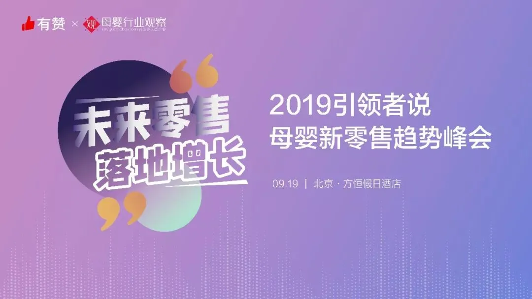 未来已来,把握未来零售发展节奏,掌握未来零售时代的信号才是实现企业落地增长的破局关键。2019年9月19日,北京,母婴行业观察将联合有赞举办《未来零售 落地增长·引领者说2019母婴新零售趋势峰会》,邀请多位母婴行业优秀玩家,共同解锁社交电商运营新思路,探析未来零售的前进路径,一起破解母婴行业增长新引擎!