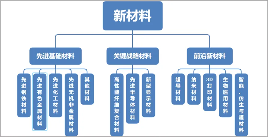 目前,根据《新材料产业发展指南》,我国新材料主要分为先进基础材料、关键战略材料、前沿新材料三大类。