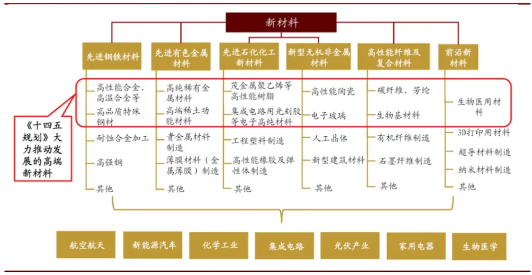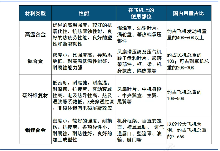 资料来源:《“十四五”原材料工业发展规划》、《大飞机引领先进材料发展》、中航证券