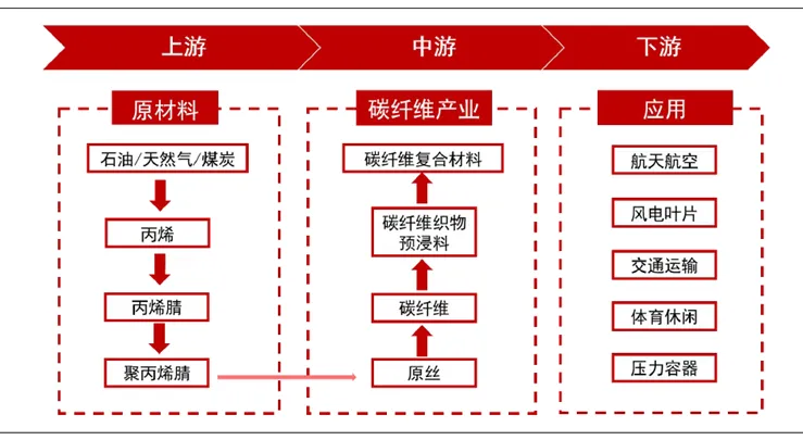 以碳纤维材料为例,作为轻量化材料以其出色的性能被用于航空航天、风电、体育休闲、汽车等多个领域,是新材料领域用途最广泛、市场化最高的材料,被誉为“新材料之王”。