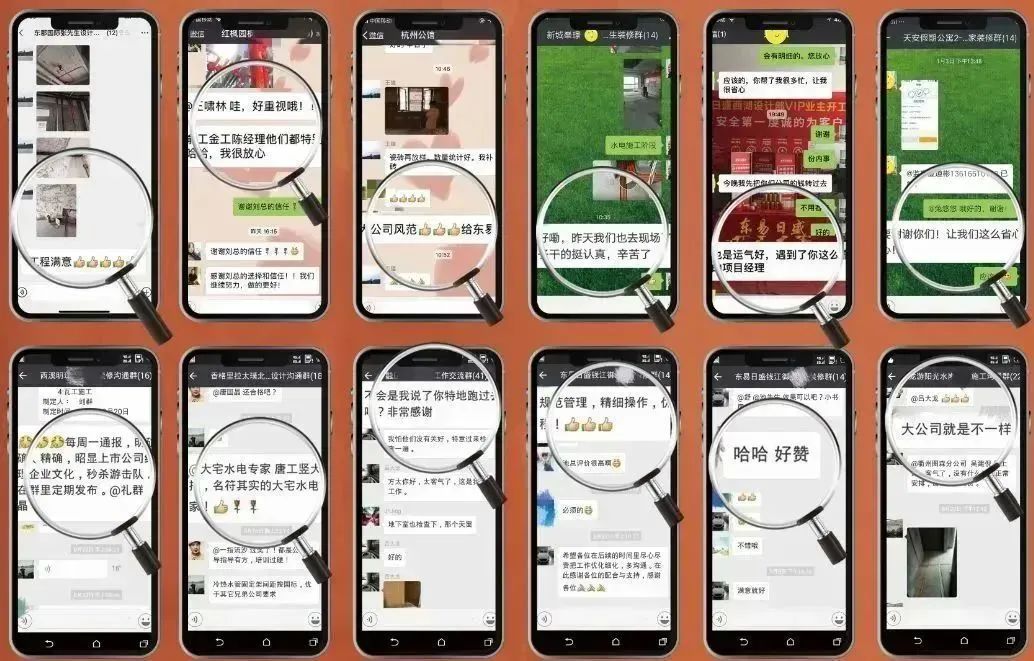 东易日盛针对每一个客户都有专属微信群,里面涵盖项目涉及的所有工作人员,实时汇报工程进度,确保遇到问题可以及时解决,确保施工过程责任具体落实到人。