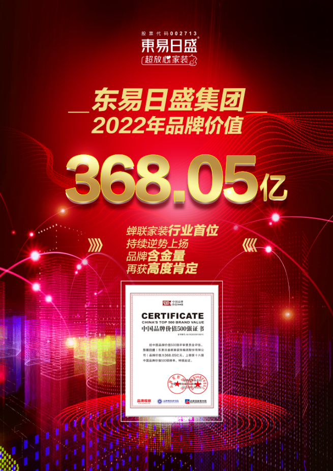 东易日盛家居装饰集团股份有限公司始创于1997年,目前已发展为一家专业化、品牌化、产业化的大型上市家装集团公司(股票代码:002713),连续多年居于《中国最具价值品牌500强》家装行业前列,品牌价值高达368.05亿元。