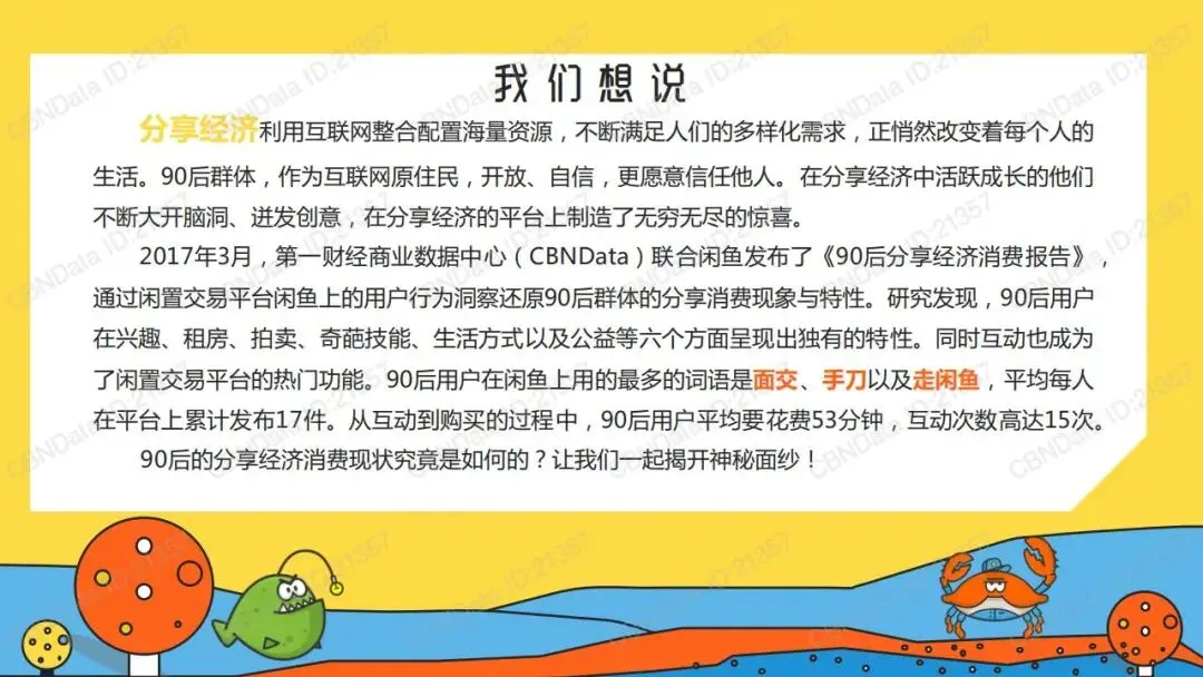 《90 后分享经济消费报告》基于闲鱼平台数据,全面呈现了 90 后在分享经济领域的消费特征与行为习惯,核心展现出 “社交化、个性化、绿色化、公益化” 的鲜明特质,90 后已成为分享经济的核心参与群体。