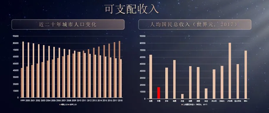 基于中国巨大的存量我们可以看到今年新增的人口即使比去年少了三分之二个丹麦,但依然等于新增了两个丹麦。你能想象在北欧、在丹麦的美人鱼广场上突然塞两千万人吗?