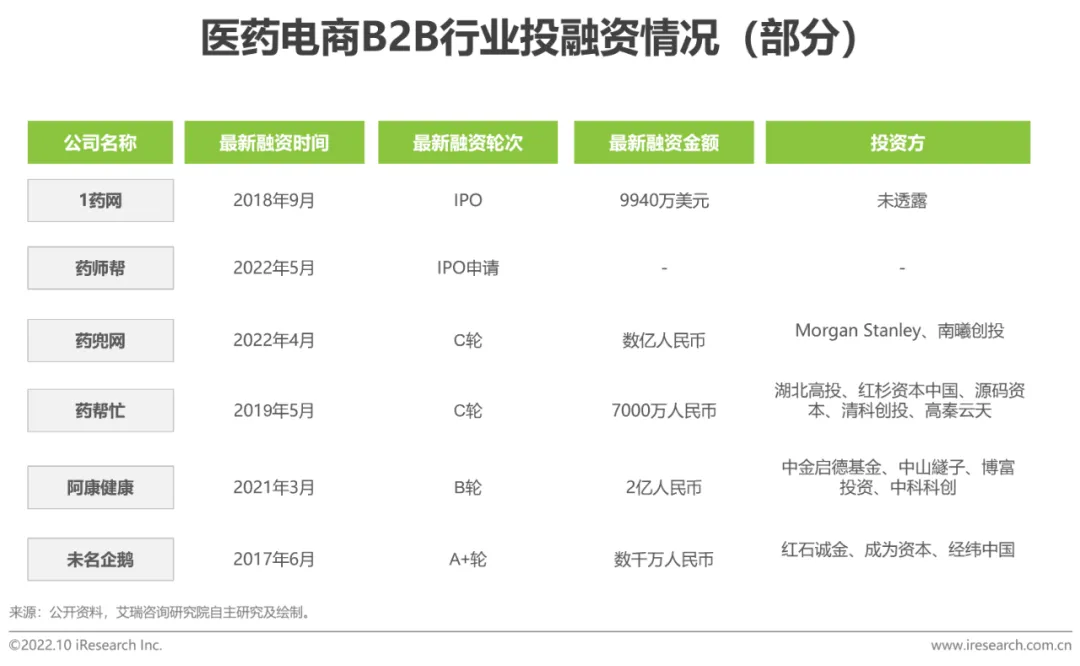 中国医药电商B2B投融资现状