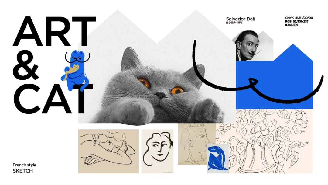居家先生是一个精致设计感的家居品牌,怎么才能让这只猫传递出居家先生设计师的气质呢?我们找到了一个跟“艺术性”相关的元素——达利。