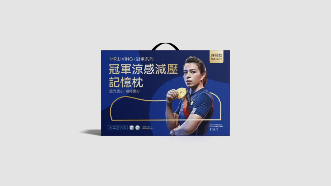 在服务期间,居家先生签约了中国台湾的举重奥运冠军郭婞淳。我们也帮助居家先生对整个代言人的宣传方案做了整体策划。以及冠军凉感减压记忆枕的包装设计。