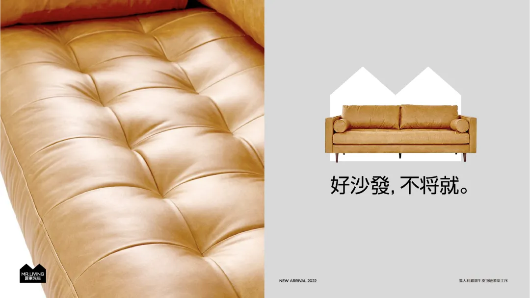 我们为居家先生想了一个口号叫“好生活,不将就”。这句话具有普适的价值,而且它能引起消费者的共鸣——为什么消费者会选择居家先生?因为他们对于生活,对于产品品质我们都不将就。同时,对产品的不将就,也是居家先生经营的理念。