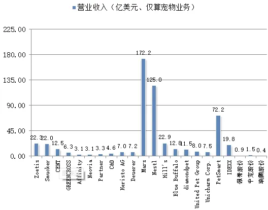 全球主要宠物企业的营业收入情况