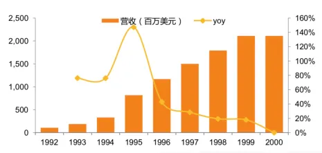 PetSmart成立于1986年,最初是一家宠物产品生产商,1987年设立了两家门店,在美国首创仓库式大卖场模式,前店后仓,提供有竞争力的商品价格。因为品类齐全、价格低廉,可以满足宠物主集中采购的需求,所以前期PetSmart成长迅速,到1990年PetSmart已有29家店面,平均面积2500平方米。1993年,PetSmart在纳斯达克上市,然后开始并购中小型宠物连锁超市,1994年投资参股宠物医院Banfield,到1999年,“快速扩张+收购整合”的策略让公司的门店数量达到534家,但是公司营收只在1995年大幅增长后,1996-2000年的营收增速连续下滑,商店坪效也处于持续下降状态,这段时期PetSmart处于内忧外患的局面。