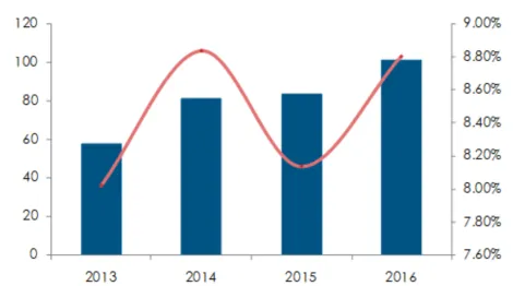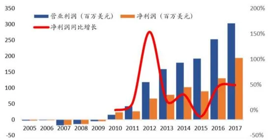此后公司业绩驶入快车道,业绩持续增长,盈利能力不断上升,公司的竞争对手也开始变成雀巢、玛氏和Hill’s这些巨头。为了维持品牌知名度和占领更大的市场份额,公司在电视广告方面投入了大量资金,营销费用从2013年的接近4000万美元上升到了2016年的1亿美元,这些投入带来的效果也是明显的,毛利率从2014年的40%上升到2017年的46.2%,净利率从2014年的11.1%上升到2017年的15.2%。