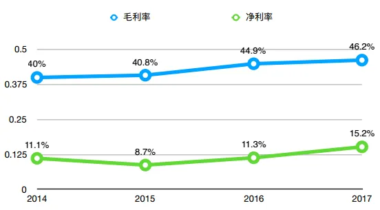 蓝爵毛利率及净利率