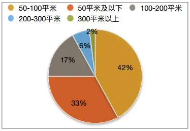 中国宠物店的经营面积分布情况