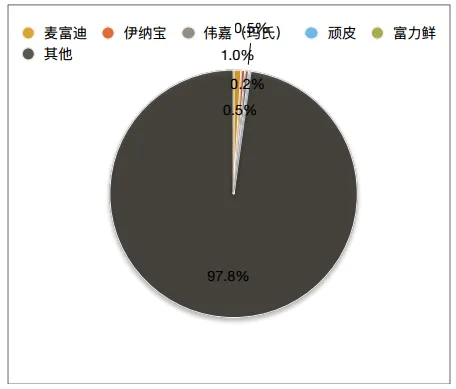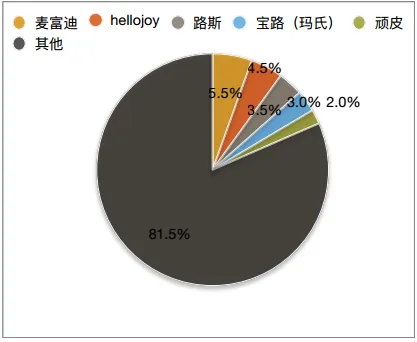 由于不管是宠物食品还是宠物用品,其技术壁垒并不高,因此,在宠物行业快速增长、电商渠道持续完善的过去十年,宠物食品和用品的生产商和品牌商数量急剧增长,行业高度分散,线上渠道的分散程度大于线下。