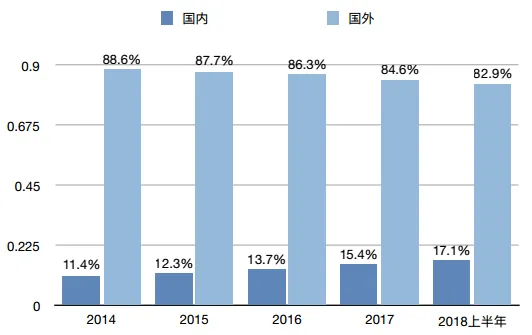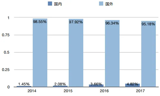 中宠股份境内外的营业收入占比
