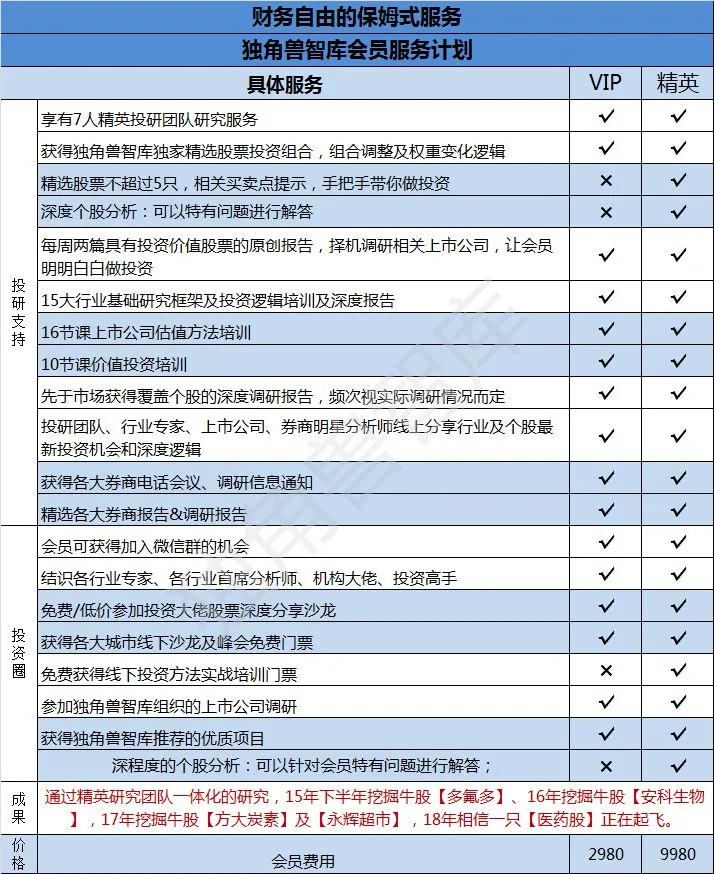 1、享有7人精英投研团队研究服务,团队成员包括前上市公司财务总监、前券商新财富明星分析师、私募高级研究员、十余年股市投资经验独立投资人等;