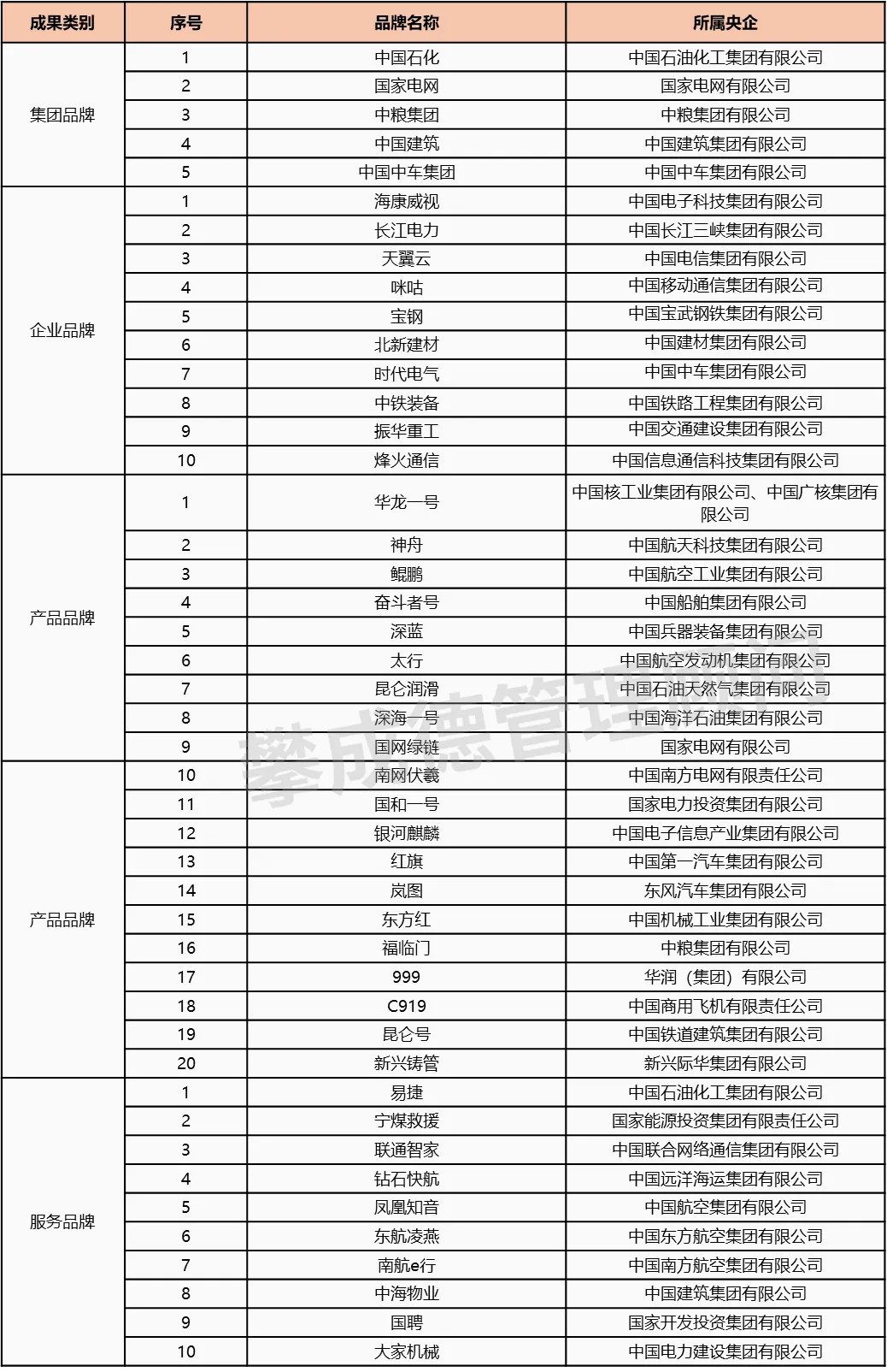 ▌附录:中央企业品牌引领行动首批优秀成果